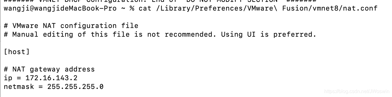 1 | cat /Library/Preferences/VMware\ Fusion/vmnet8/nat.conf |